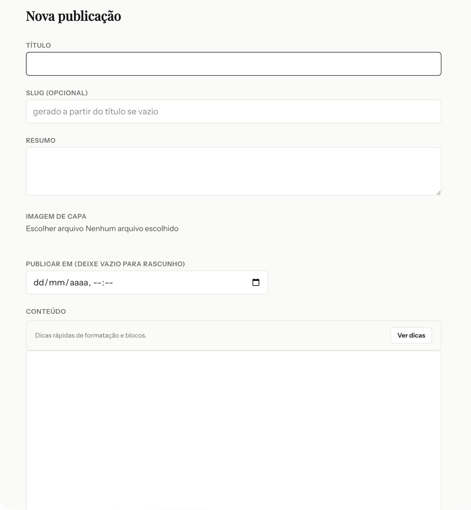 - Agendamento: Se você estiver preparando um lançamento, pode selecionar uma data futura. O post só ficará visível para o público no dia e hora que você escolheu.